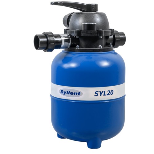 Os Filtro para piscinas até 23.000 litros Syllent Sly20 - 1/4cv, são fabricados através do processo de roto moldagem em material termoplástico na cor azul, com sistema interno de distribuição e drenagem e válvula seletora de seis vias com visor de retro lavagem e manômetro.